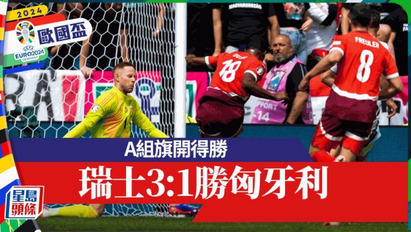 周六歐國盃A組首輪第2場賽事,瑞士憑前鋒基華奧杜亞和中場艾比斯查各建一功,加上後備的比列安保路補時建功,以3:1擊敗由班拿巴斯華加破蛋的匈牙利,打響分組賽頭炮。瑞士全取3分後,得失球不及德國暫居小組次席。