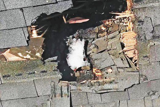 巨大冰塊砸穿屋頂,幸好沒有人受傷。 News12 New Jersey圖片