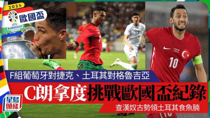 今晚歐國盃沒有早場賽事,只上演兩場F組首輪比賽,分別是有不老鐵人C朗拿度領軍的葡萄牙對捷克、土耳其對格魯吉亞。C朗拿度今晚上陣便可以成為歷史上首位出戰6屆歐國盃的球員,而這名向來對自己和球隊要求極高的葡萄牙史上神射手,賽前揚言今屆賽事目標最少入決賽,故今晚必傾盡全力助葡軍大勝打響頭炮。至於土耳其近年國際賽成績不俗,歐國外便力壓上屆世界盃季軍克羅地亞首名出線,今晚面對要靠歐國外附加賽擊敗盧森堡才取得決賽周席位的格魯吉亞,贏波不成問題。