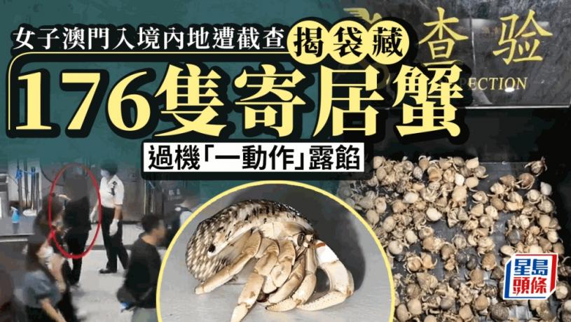澳門有女子經拱北入境內地時,鬼鬼祟祟不將隨身購物袋過機檢查,遭拱北海關人員截查,發現袋中藏有176隻活體寄居蟹。