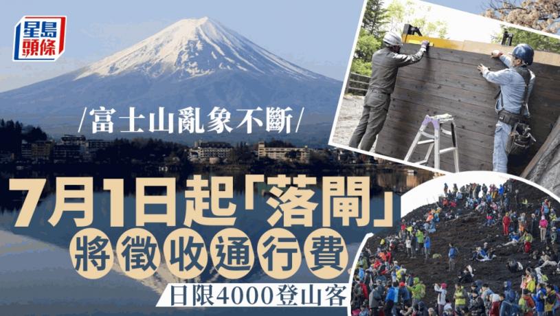 日本富士山登山客過多,許多人訂不到山上小屋過夜,就選擇不過夜的「彈丸登山」。有不守規矩的登山客擅闖小屋借廁所,或升起篝火,加上攻頂處人擠人,使亂象叢生。為保護登山客安全,山梨縣知事長崎幸太郎宣布,從7月1日起實施通行管制,啟用登山閘門,收取通行費,並限制每天登山人數。