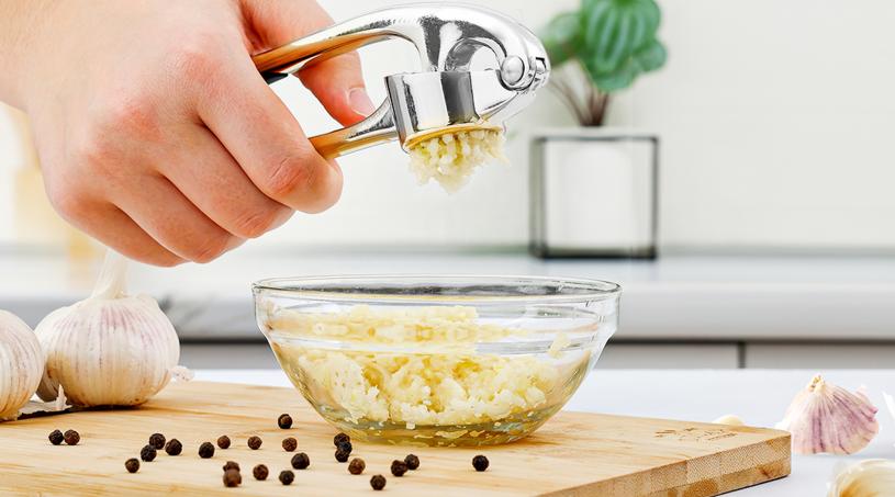 這款壓蒜器採用食品級防銹材料製成,無論是專業廚房還是家庭廚房,都能輕鬆應對。內建螺柱設計能在幾秒鐘內提取更多蒜泥,讓你的烹飪過程更高效。舒適的人體工學手柄設計,讓你在壓蒜時不費吹灰之力,再也不用擔心手上留下強烈的大蒜氣味或黏性殘留物。清潔也非常簡單!只需在流水下沖洗,或者直接放入洗碗機中即可徹底清潔。我們建議在使用後立即沖洗,以避免殘留的果肉和纖維硬化。多用途工具,不僅可以壓蒜,還可以用來壓生薑、洋蔥甚至堅果,無論是香菜籽、小茴香籽還是胡椒,都能輕鬆處理。
