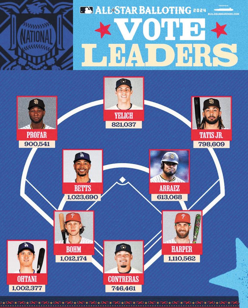 超過百萬票的球星還有道奇游擊手貝茲,費城人三壘手波姆。貝茲在國聯游擊位置獲得102萬票,領先費城人特雷.騰納51萬票,但是貝茲前役遭到觸身球打傷必須休養數周。波姆在國聯三壘位置獲得101萬票,第2名的教士馬恰多僅有26萬票。