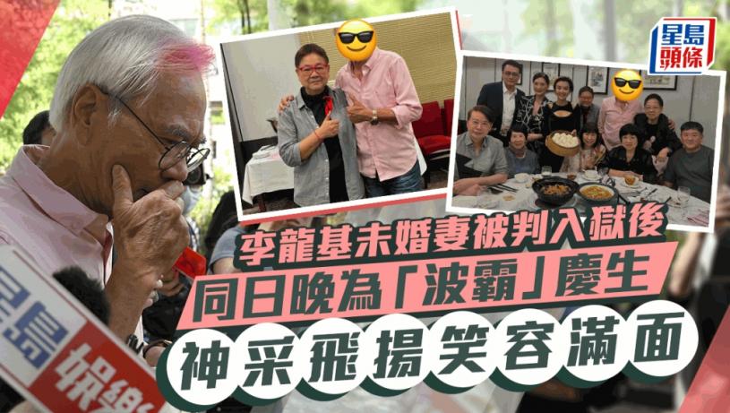 73歲李龍基未婚妻王青霞(Chris)因被控逾期居留、使用虛假文書及違反逗留期間接受工作等共7宗罪,昨日(20日)被判入獄25個月,李龍基離開法院後曾激動爆喊,直言判期不是預期之內,但表明不會上訴,強調會等未婚妻出獄後結婚!未婚妻被宣判後的第一晚,李龍基選擇現身「波霸」葉子楣的農曆生日飯局,全程笑容滿面,似乎心情迅即平復下來。