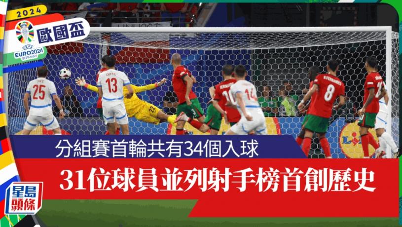 今屆歐洲國家盃分組賽首輪賽事已經全部完成,6組12場比賽合共炮製34個入球,場均2.83個。在這34個入球中,有3個是烏龍球,其餘31球由不同球員包辦,歷來首次在完成首輪分組賽後沒有一位球員入多個一球,出現31人並列射手榜首的奇景。