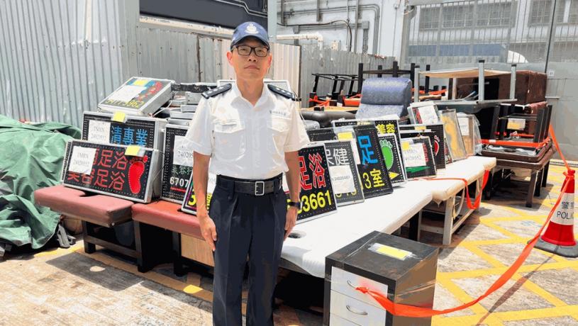 屯門分區助理指揮官(行動)總督察黃龍表示,屯門新墟有人經營按摩院,部分更提供性服務,對居民造成極大滋擾,亦成為罪惡溫床,警方遂展開打擊行動,突擊搜查11個目標單位,行動中拘捕14名女子(32至57歲),涉嫌「協助管理賣淫場所」、「協助管理無牌按摩院」以及「違反逗留條件」等罪,並檢獲大量避孕套、潤滑劑、廣告牌及按摩床等證物。