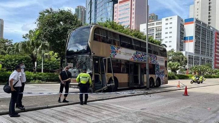 今日(20日)早上8時29分,一輛雙層九巴沿長沙灣道往旺角方向行駛,當駛至麗新商場對開時,失事剷上路壆撞向一支燈柱。事後巴士車長感不適,需由救護車送院,警方在場調查。