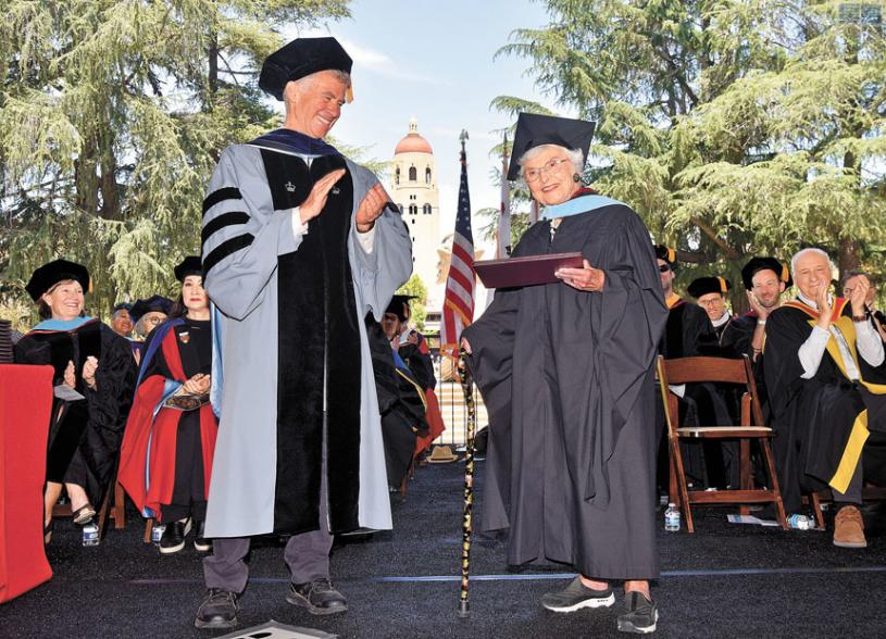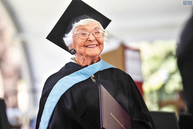 上周末,波羅阿多(Palo Alto)105歲的希斯洛普(Virginia “Ginger” Hislop)從史丹福大學(Stanford University)獲得教育學碩士學位。她走上講台,微笑著接過來之不易的畢業證書,象徵其從1936年開始的教育之旅告一段落。