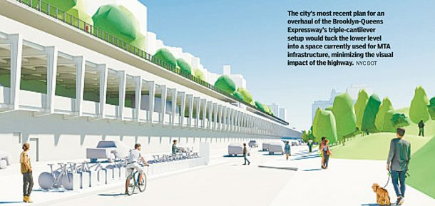 她說,為了上端路段的安全,該局工程人員曾將在布碌崙高地眺望台下的電流輸送撤走,該局工程人員正在進行以加寬大道上的車道,從10呎增加至12呎,而這是聯邦當局規定的路寬,同時工程進行也不會影響破壞上端的布碌崙高地眺望台。官員指出,他們在進行臨時維修時將會將對布碌崙高地路段的影響減至最低。該局之前提出的BQE中央路段維修計畫曾引起民眾和環境保護團體的非議,他們認為,任何試圖增加車道的計畫將吸引更多車輛使用,而令該大道更加堵塞。