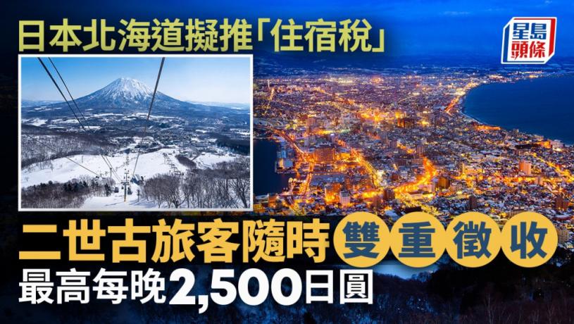 綜合媒體報道,北海道政府早於2月已彙整了住宿稅方案,根據房價高低徵收每晚每人住宿稅,其中低於2萬日圓的收100日圓;2萬至5萬日圓以下收200日圓;5萬日圓以上的收500日圓,但學校旅行除外,並預計每年可產生約45億日圓(約2.2億港元)的稅收,以用作開發人力資源、改善交通基礎設施,以及更好的行銷等。
