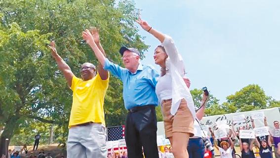 鮑曼的集會獲得桑德斯和AOC力挺。網上圖片
