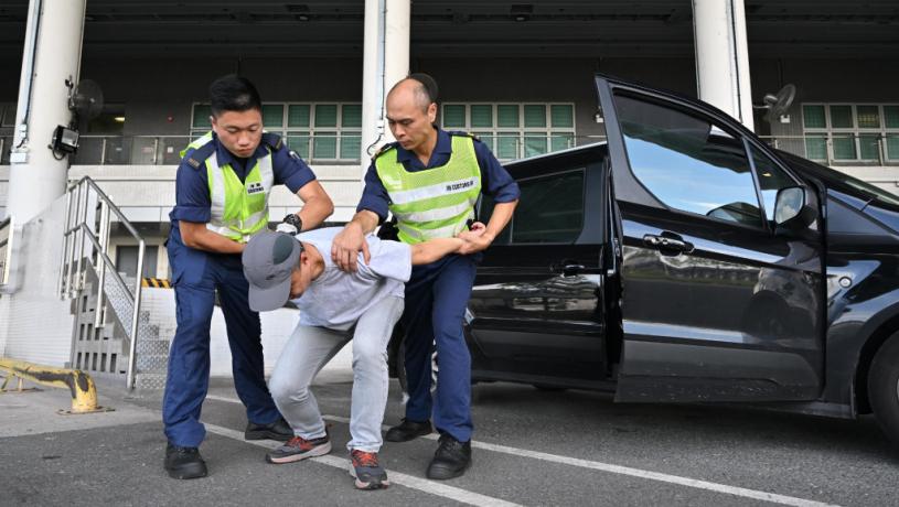 香港海關和消防處今日(24日)下午在深圳灣管制站聯合進行代號「破狼」的反恐情報及危害物質事故演習。今次演習模擬海關人員在出境貨物檢查大樓清關時,懷疑一輛出境輕型貨車的司機與恐怖活動有關。查驗期間,海關人員發現車底藏有一個懷疑載有危害物質的容器並出現洩漏,遂立即啓動緊急應變計劃通報消防處,及將懷疑與恐怖主義有關的線索通報跨部門反恐專責組跟進。