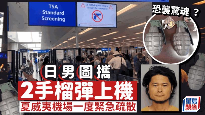 夏威夷警方指,涉案的是41歲日本籍男子Akito Fukushima,來自日本石川縣。日男在希洛機場(Hilo International Airport)進行出境行李檢查時,安檢處發現其行李中藏有2顆疑似手榴彈的物品。