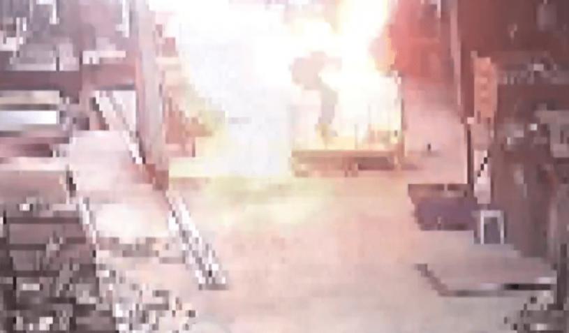 土耳其發生罕見工業葛外,一名24歲工人攪拌混合金屬鍋爐內的油漆時,鍋爐突然發生爆炸,他整個人被爆噴的火焰炸飛,身上衣服迅即着火,且整個人凌空翻騰360度落地,有關驚悚畫面被工廠攝錄機拍下來,看得人心驚肉跳,而工人亦命大,奇迹生還。
