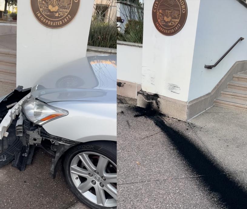 三藩市灣區的東灣聖利安住市(San Leandro)警方稱,周日上午,一名涉嫌醉酒駕駛的司機竟駕車自投羅網,徑直撞上該警察局總部。