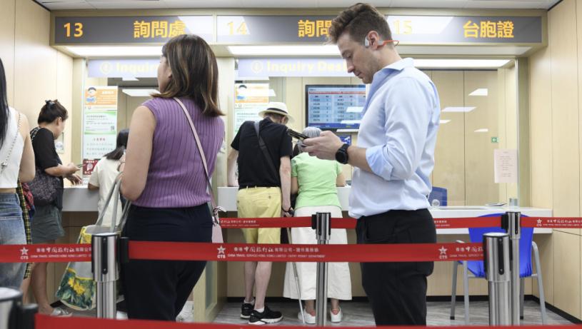 中旅集團指相關人士目前可在網上進行預約申請。從預約情况看,近日有籌號可約,申請人可根據自身需求預約,提前準備好相關材料的原件及複印件,按預約時間、地點前往辦理,中旅集團6個證件服務中心都設有專門服務櫃檯。