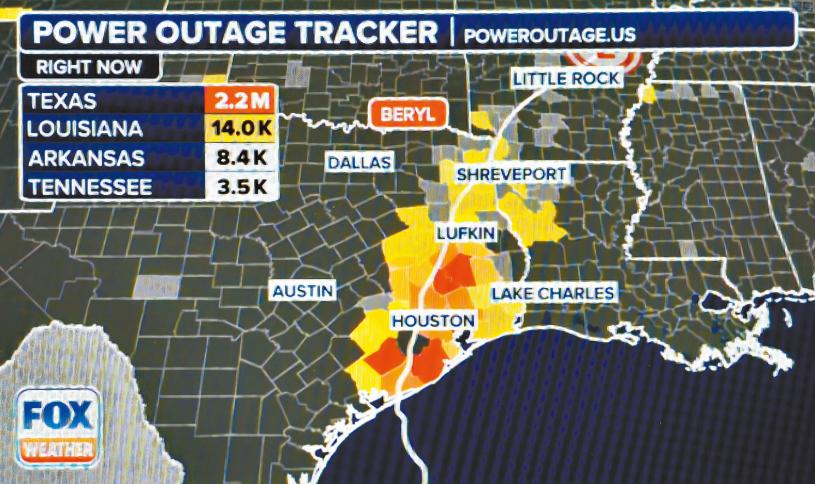 颶風「貝里爾」(Beryl)吹襲德州及路易斯安那州期間,不但造成嚴重破壞並導致至少8人死亡,也讓德州超過200萬戶家庭和企業斷電,休斯頓尤其是停電重災區。民眾抱怨當地高溫指數超過100度,而且酷熱天氣料將持續至下周初,通電遙遙無期令人難以忍受。