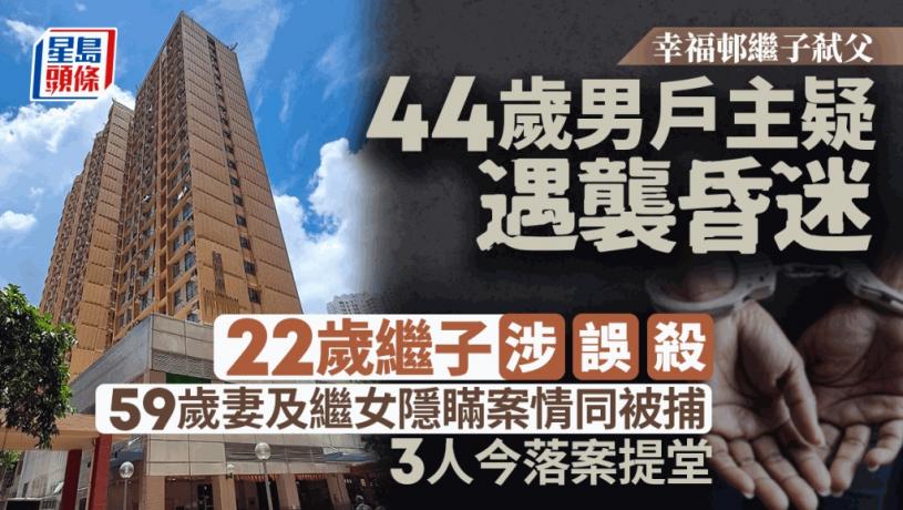 本周一(8日)一名40多歲男子在長沙灣幸福邨被發現暈倒在家,警方接報到場,將昏迷男事主送院,其後搶救不治,警方發現事主頭部有可疑傷痕。消息稱,男戶主與50多歲妻子及兩名繼子女同住。警方經調查後,獲悉早前男死者曾與繼子發生爭執打鬥。警方在調查過程中,懷疑三名家人涉嫌「夾口供」隱瞞事實,分別涉嫌誤殺及妨礙司法公正被捕。案件今日在西九龍裁判法院提堂。