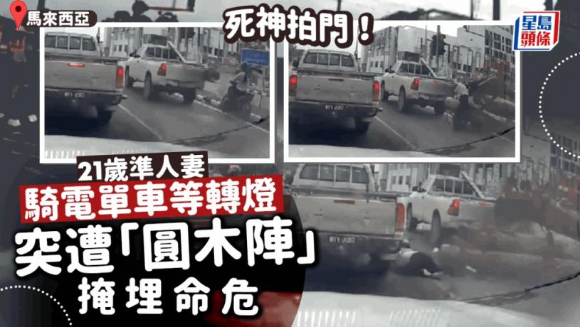 馬來西亞發生驚慄交通意外,一名21歲女子騎電單車停在交通燈等候時,突然遭大堆從另一架貨車丟落的大圓木砸中掩埋,身體多處骨折,肝、脾、膽、肺和腸道也傷勢嚴重,目前仍在搶救中,命懸一線。