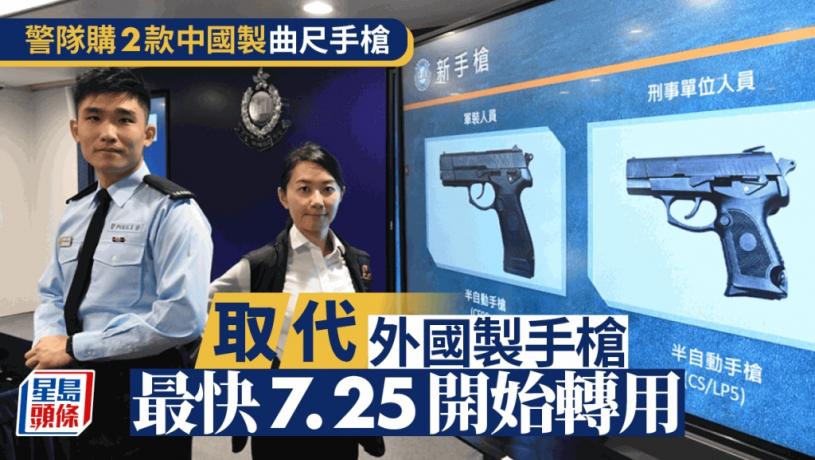 警方今日(11日)宣佈,將逐步採用兩款中國製曲尺手槍,以取代現有兩款外國製手槍,警隊將分階段進行訓練,首批接受訓練的包括衝鋒隊、機動部隊、快速應變部隊等,最快今月25日完成訓練,開始配備新半自動手槍執勤,而未接受新手槍訓練的警員會繼續使用現有的手槍。