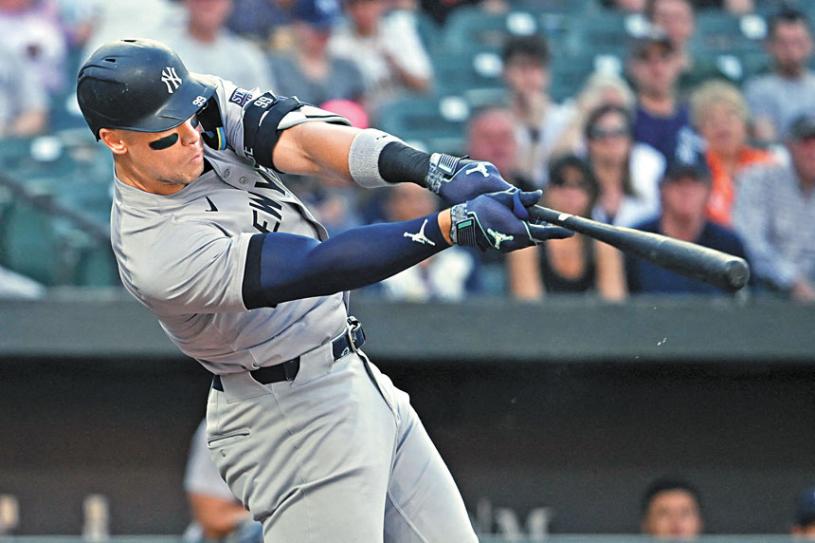 3局上「法官」升堂!已經8場比賽沒開轟的賈吉,鎖定金鶯菜鳥左投波維奇的紅中曲球,大棒一揮扛出左外野方向形成陽春砲,擊球初速107.4英哩,飛行距離397英呎,本季第33轟出爐,持續獨走大聯盟,幫助揚基取得3:1領先。