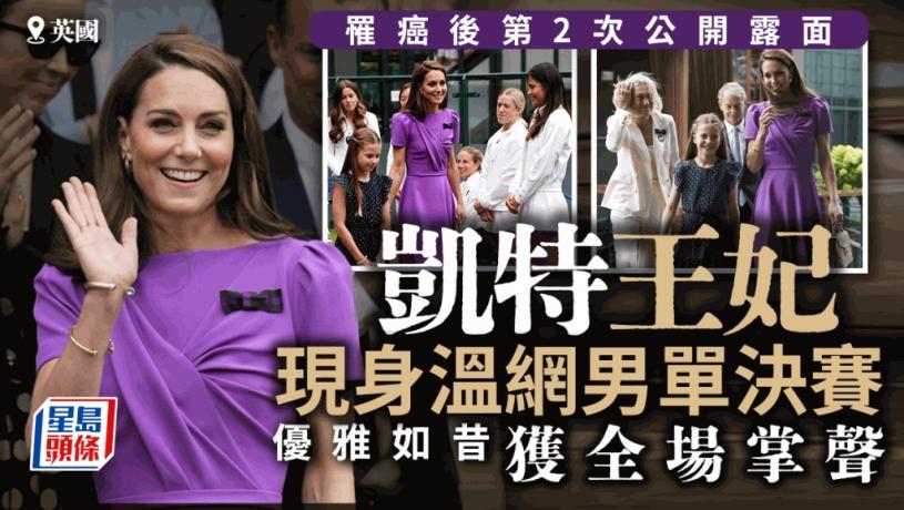 在祖高域對艾卡拉斯的男單決賽舉行前,作為全英俱樂部贊助人的凱特,穿上紫色長裙與女兒夏洛特公主抵達場地,在皇室包廂就座。凱特向觀眾揮手致意,部分人揮舞英國國旗,亦有人站立鼓掌。