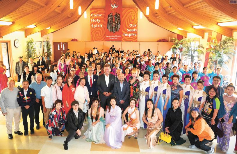 出席聚會的還有第四區市參事殷嘉立(Joel Engardio)、教育委員候選人林灼世(Laurance Lem Lee)。「住房政策改良會」聯合創始人招霞致辭,亞洲耆英會、花園角健身舞蹈團、美國國際名媛慈善聯盟、珍蘭歌舞團等在舞臺上精彩歌舞演出。