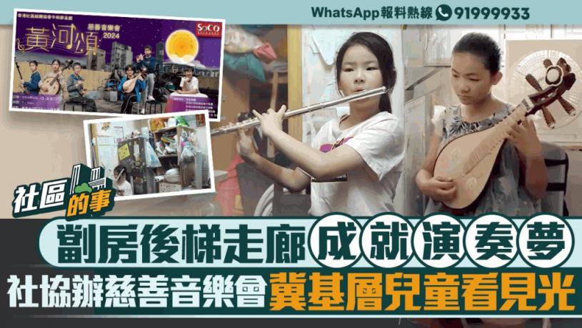 根據政府統計處資料,全港約有22.2萬名兒童生活在住戶入息中位數一半以下的貧窮家庭,即大約每4名兒童便有一人身處貧窮境況。他們大多居住劏房,更遑論有額外金錢報讀音樂班。香港社區組織協會近年資助基層兒童學習音樂,並選拔出一班有才華的兒童,參加9月舉行慈善音樂會,為貧困家庭籌款以外,更提供一個向社會展示才華的機會。其中有基層少女因在電視中聽見《笑傲江湖》的古箏曲,便下定決心苦練古箏,即使環境不理想,夏天有近40˚C高溫,但仍無阻她練習。