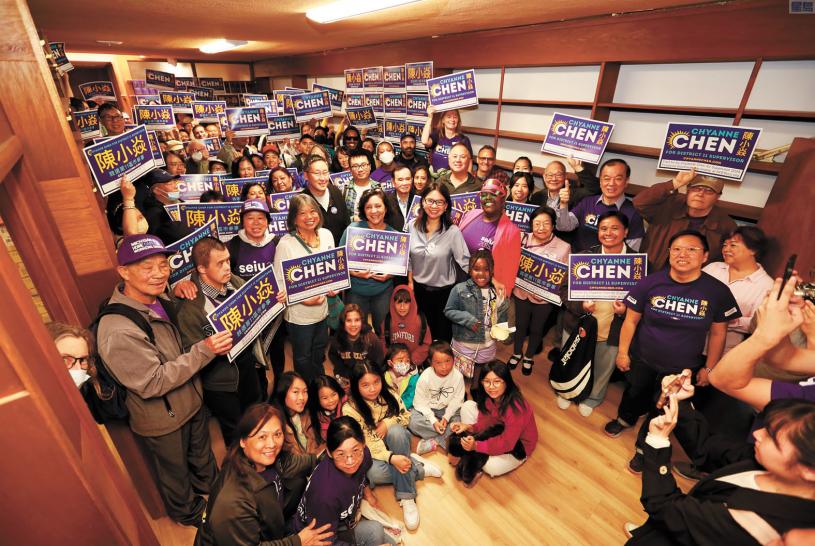 三藩市第11區市參事候選人陳小焱(Chyanne Chen)競選辦公室,昨天舉行開幕及競選啟動儀式。無需敲鑼打鼓、舞獅舞龍,狹窄的空間早已聚集了近百位支持者,彰顯參選人的政治人脈。