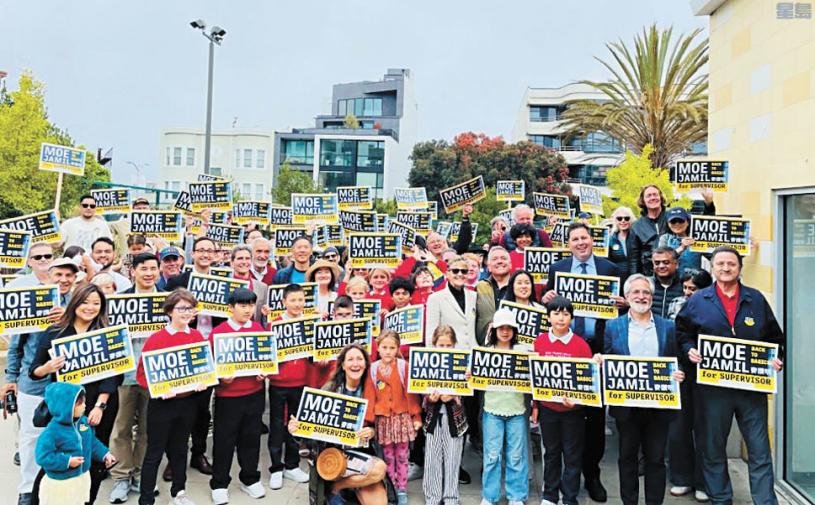 三藩市第三區市參事候選人麥讚明(Moe Jamil),昨天在太太楊欣、兒子楊友明(Oliver)陪同下,在海倫威爾斯公園 (Helen Wills Park) 舉行參選第三區市參事競選啟動儀式。麥讚明兒子楊友明與三藩市男孩合唱團合唱《I left my heart in San Francisco》(我把心留下三藩市)。