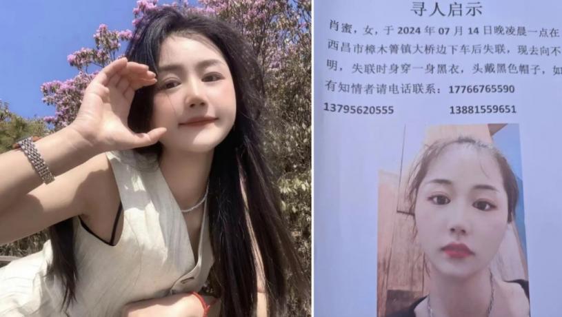 四川西昌24歲少女肖蜜周一(15日)離奇失蹤。親友在網上發放尋人啟事,即時引起關注。