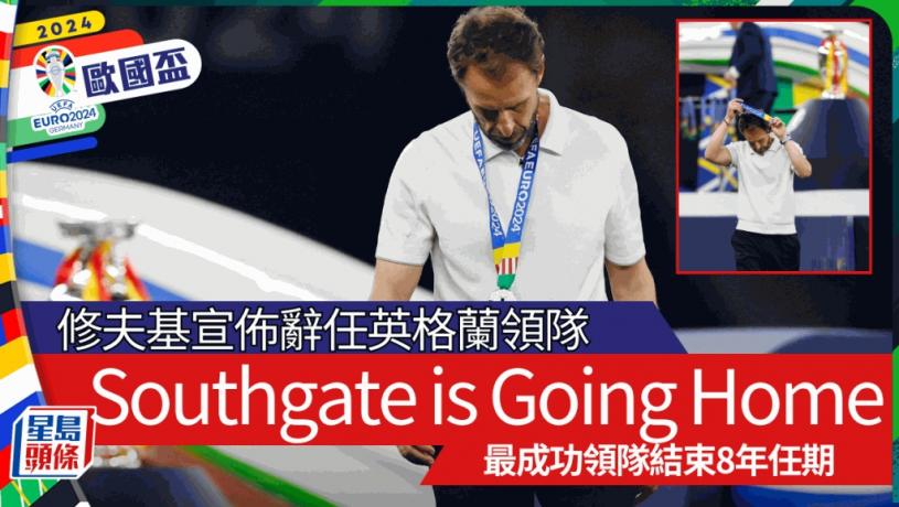 英格蘭連續兩屆在歐國盃決賽落敗,足球再一次未能回家,但Southgate is going Home,英格蘭領隊修夫基在周二公開宣佈辭職,結束8年任期。據悉,英足總原先希望修夫基能續約,然而後者則決定尋求新挑戰。