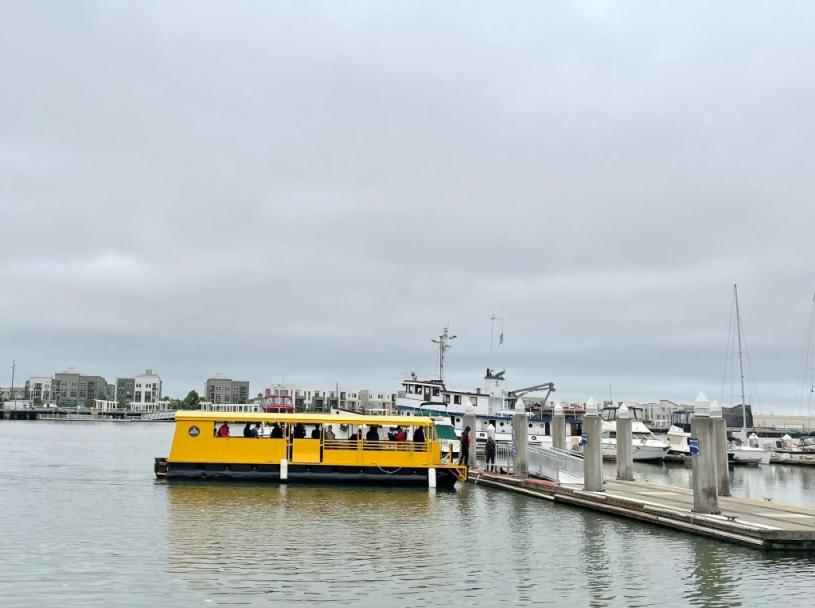 取名為Woodstock的黃色水上巴士,旨在緩解波西隧道(Posey Tube)以及另一座會讓行程增加數哩的橋樑的擁堵和不便。這項為期兩年的試點計畫將評估對這替代選擇的需求,並探討長期解決方案的可行性,例如專用自行車和行人橋樑。