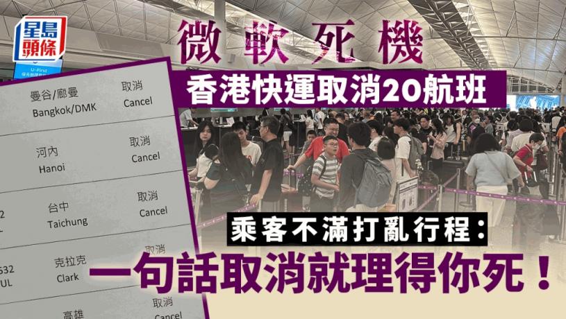 他無奈地說,和家人共4人花費9,000元買了前往首爾的機票,昨日知道微軟死機造成機場混亂,所以和親友特意早點起床留意情況,結果見到自己訂了機票的航班被取消,一肚怒火,「我已經訂晒所有嘢,唔係你一句話取消,我就取消晒行程嫁嘛!一句話取消,就理得你死!」