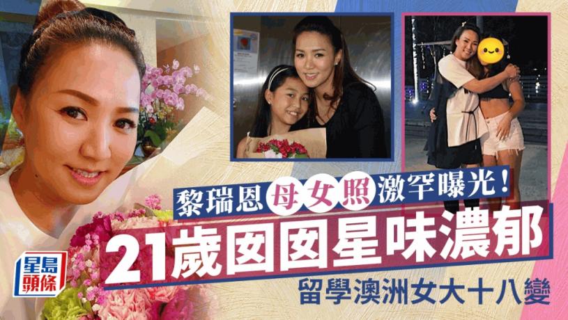 早前黎瑞恩曾透露女兒還有一年便畢業,畢業後會返港工作,雖然一向愛錫子女,但就未有追問女兒現時是否有拍拖,自己則自由自在,未有新對象。黎瑞恩1991年以歌手身份出道,1996年與富商曾憲梓三兒子曾智明拍拖後,一度有傳遭曾憲梓反對,黎瑞恩2002年嫁入豪門,終於被兩老接受。黎瑞恩婚後育有一女一子,並淡出幕前專心相夫教子,可惜至2014年親證離婚,並獨力撫養子女。有指離婚後,曾憲梓曾叮囑兒子要安頓好黎瑞恩的生活,而離婚後的黎瑞恩,亦定期帶一對仔女上廣州探望當時在養病的前老爺,可見關係相當融洽!
