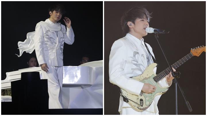 音樂人徐浩與一眾樂手及管弦樂團樂手齊齊穿著白色服裝進場就坐。