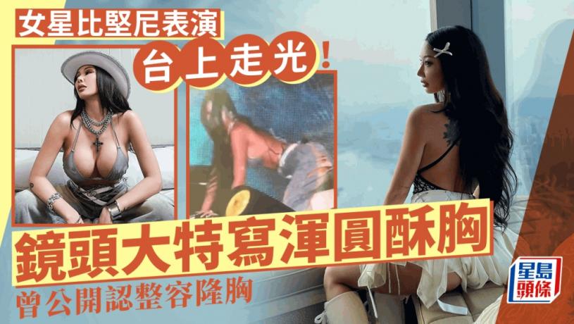 韓國35歲女星Jessi自小在美國出生長大,作風直率、大膽,外型美艷火辣的她更大方直認自己曾經整容、隆胸。最近Jessi在韓國首爾參加Waterbomb音樂節,當日她更以比堅尼上陣,不過因跳舞太大力導致比堅比移位,在台上不慎走光。