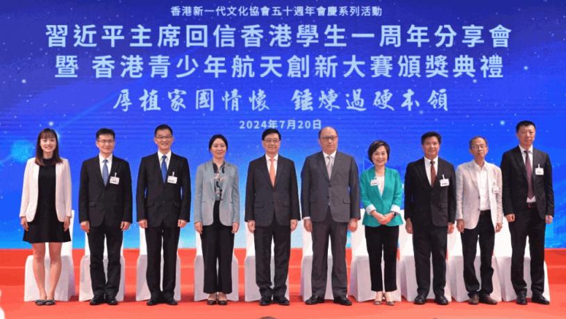 香港新一代文化協會今日(20日)舉行「習近平主席回信香港學生一周年分享會暨香港青少年航天創新大者頒獎典禮」。行政長官李家超指一年以來的工作,堅定了學生的「愛國心,報國志」。中聯辦主任鄭雁雄則形容,愛國主義教育已融入香港日常。