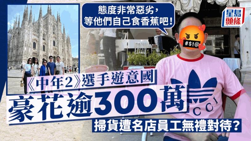 相關閱讀:《中年2》選手豪遊意大利兩日豪花逾110萬 狂掃名牌歎米芝蓮住百年酒店
