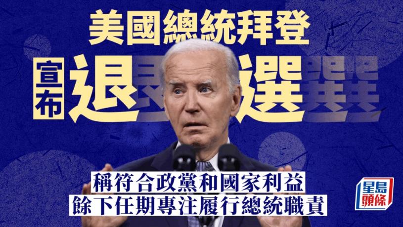 81歲的拜登上月底與美國前總統特朗普辯論中表現不佳,受到來自民主黨同僚的壓力。他在社交平台X上發文表示,擔任總統是他一生中最大的榮幸。拜登指,「雖然我打算尋求連任,但我相信,我退出並在餘下的任期內專注於履行總統職責,才符合我的政黨和國家的最佳利益」。