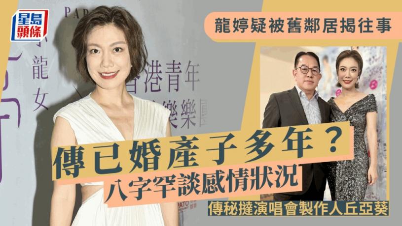 現年43歲、憑《中年好聲音》爆紅的「小龍女」龍婷早前被《東周刊》獨家踢爆與資深演唱會製作人丘亞葵(Vigo)撻著,兩人更被拍到在車廂內激嘴。事後丘亞葵回覆稱:「只係朋友式嘅Hello Kiss。」龍婷亦表示「僅為多年好友,兩人之間純屬友誼」。向來甚少提及感情狀況的龍婷, 日前有被一個聲稱是前鄰居的網民在小紅書發文,表示龍婷是有老公和小朋友,龍婷以8個字回應事件。