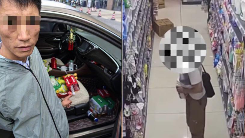 無獨有偶,另一家店內的公共視訊顯示,這名男子在將物品裝入背包和口袋後,結賬時買了一包澱粉,隨後揚長而去。得手後,該男子將盜竊來的物品放入自己的越野車內,隨後前往下一家超市繼續行竊。
