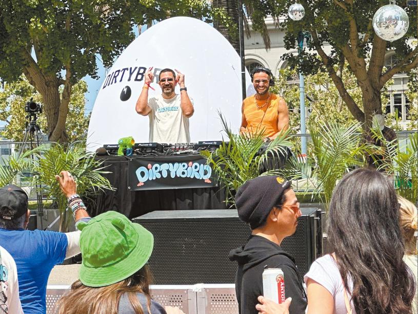 這是三場免費市中心音樂活動的第一場,主題為「Dirty Bird:BACK TO BAYSICS」。「Dirty Bird」是一家位於洛杉磯的知名獨立電子音樂廠牌及唱片公司,旗下有諸多知名DJ和製作人。活動完全免費,且一改常態不限年齡,吸引了眾多不同年齡層的音樂愛好者,記者現場所見幼至3、4歲、長到七、八十歲的民眾都盡情投入,可見音樂世界裡無分年齡無分國界。