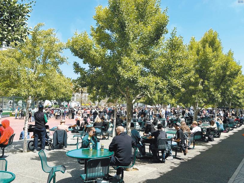 三藩市居民Daniel和三五好友一起前來,他表示Dirty bird本來就是他最喜歡的電子廠牌之一,過去看表演要花幾十元購票,想不到這次竟然能免費看。他認為以這種方式吸引人潮回到市中心或許是最好的方法之一,因為音樂總能把人們聚在一起,坦言「在這一刻我又更愛這座城市了,期待接下來能有更多精彩活動。」本報記者洪郁欣三藩市報道