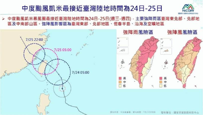 據氣象署觀測,格美正在接近台灣,預料將在今天(24日)晚上到明天(25日)通過台灣陸地,對台灣各地及澎湖、金門、馬祖等地構成威脅。預估周五(26日)離開台灣。