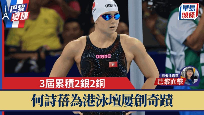 何詩蓓在去屆東京奧運拿到100米及200米自由泳銀牌震撼全港,今屆力戰下在100米及200米自由泳拿到銅牌,連同2016年里約熱內盧奧運首次參加在女子200米自由泳游出1分56秒91入16強,3屆奧運累積2銀2銅,成為香港體壇史上最多奧運獎牌的泳手,也是香港泳壇至唯一一位在奧運舞台都可以登上頒獎台。這位泳將多年來不斷代表港隊在國際泳壇創造佳績,啟發年青一代泳手奮發向上,追趕世界級游泳水平。