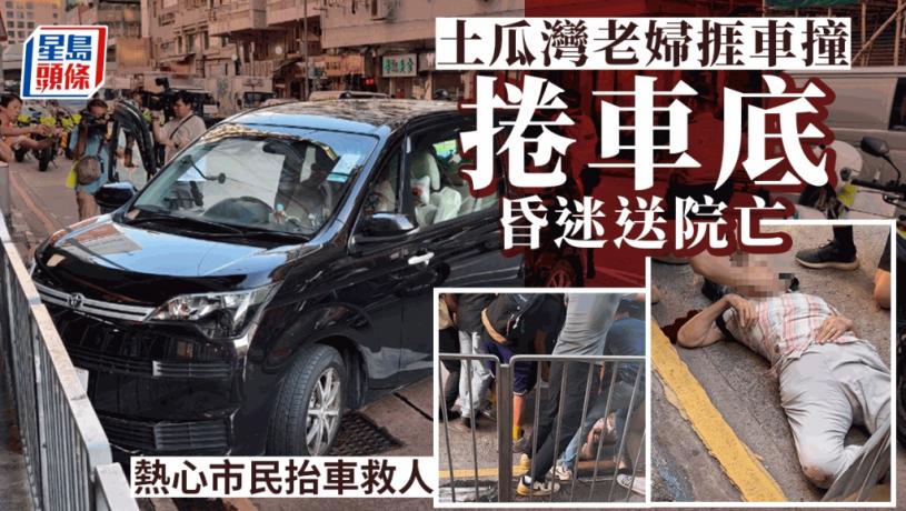 土瓜灣馬坑涌道3號對開,今日(8月3日)下午5時許,一部私家車撞倒一名90歲姓石老婦,老婦被困車底。網上片段所見,大批熱心市民見狀,上前抬起車輛救出老婦,然而老婦獲救時卻已浴血失去意識。救護員其後接報趕至,將老婦送伊利沙伯醫院搶救,期間需要救護員不斷為她心外壓搶救,惜最終不治。