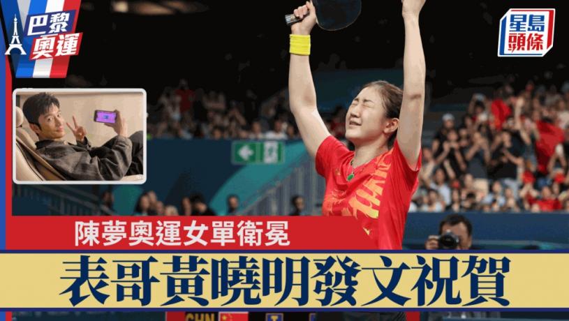 周六上演的巴黎奧運女子乒乓球女單決賽,陳夢和孫穎莎繼上屆東京奧運後再遇,今次仍是陳夢贏波奪金,粉碎孫穎莎大滿貫美夢。賽後陳夢說自己是以衝擊者身份挑戰成功,她的表哥黃曉明賽後也在網上發文祝賀表妹奪冠。