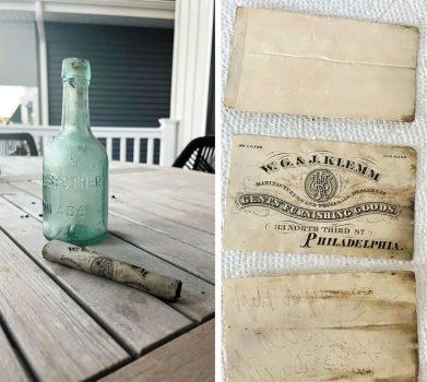 瓶內的公司卡片印有「W.G. & J. Klemm」字樣,是1881年由威廉·克萊姆 (William Klemm)和約翰·克萊姆(John Klemm)兩兄弟在費城經營的家具公司。瓶內字條則提到一艘名為「海王星」(Neptune)的遊艇,曾於1800 年代末停靠在新州大西洋城(Atlantic City)。