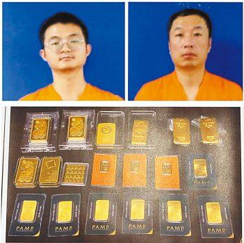 左上為陳男,右上為林男,下圖為所查獲金條。CBS 19